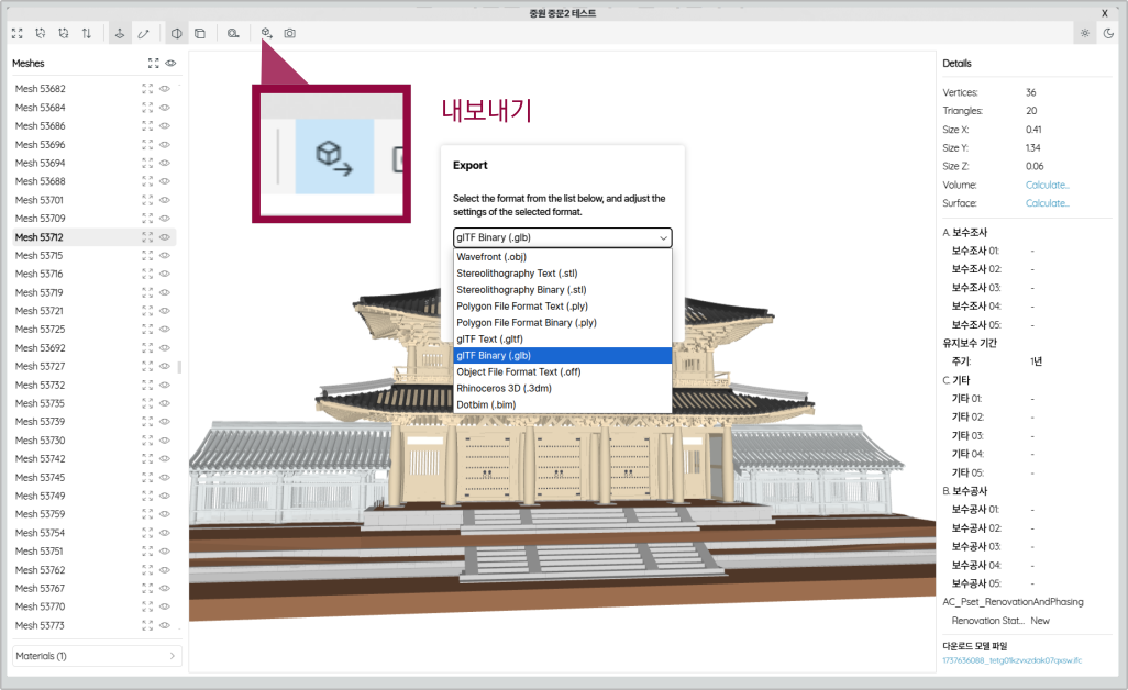 전체 또는 부분 오브젝트만 내보내기하여 다운로드가 가능합니다.